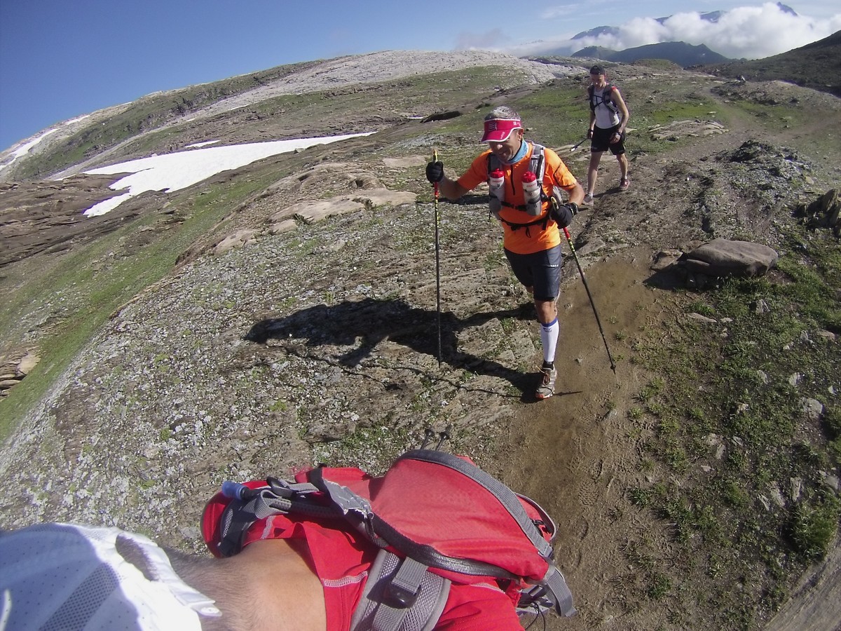 210kil/12000D+… LA TRAVERSEE : démocratisée par cette initiative et une valeur posée par Tom, Michel et François. J’ai clairement pas le niveau pour faire çà d’une traite mais le découper en 4 jours me paraît un bon compromis et reste un beau casse-croûte ! Ce sera aussi un OFF Fartleck, où le temps d’un WE, nous partageons un trip training. Dans l’équipe : Alain, Benoit et Chris qui s’affûte pour l’UTMB, Patricia qui peaufine la TDS, Benji qui découvre le trail en montagne et Youssou qui.. ??? Ben oui, qu’est ce qu’il faisait Youssou ? ah oui une vidéo ;-))