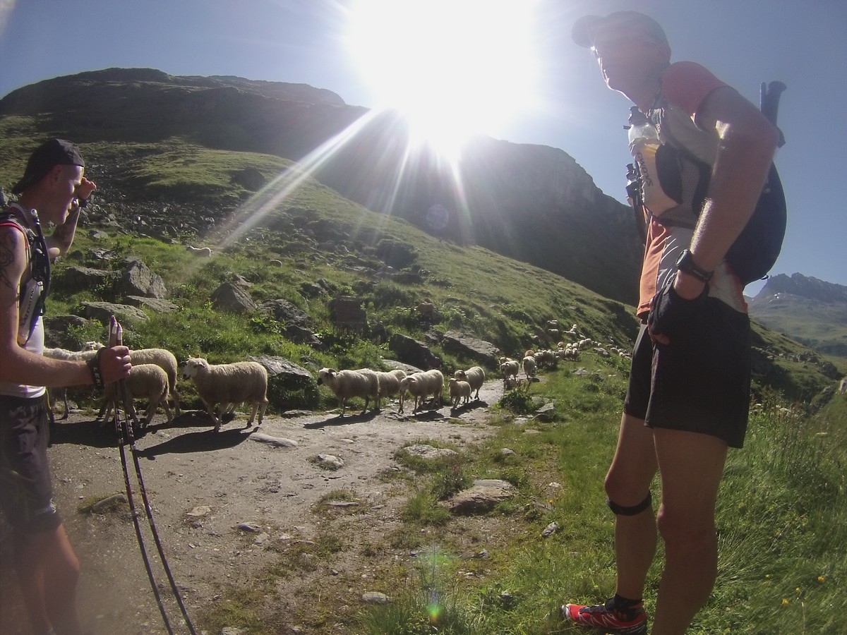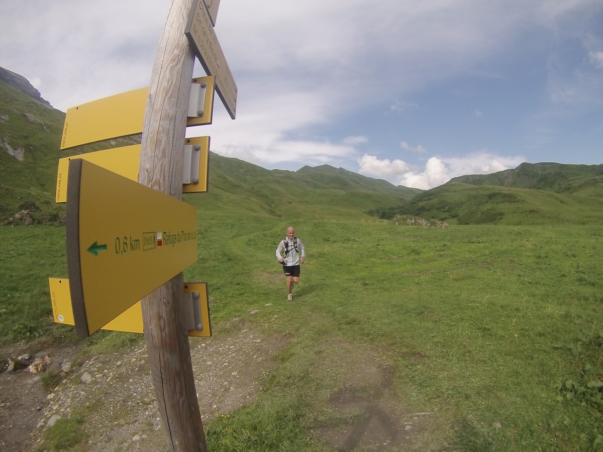 Une première partie sur les traces de l’UTMB avec les Houches, ND de la Gorge, la Balme, le col du Bonhomme… En terrain connu mais content de le faire de jour. Puis à la croix du Bonhomme, on file plein sud par une crête dans le Beaufortain. Arrivée au plan de la lai.