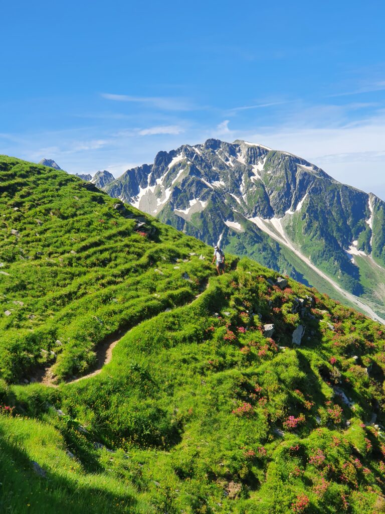 A cette époque, les névés auront disparues mais cela ne change en rien sur l’engagement du parcours. Il demande constamment d’être concentré par sa technicité. C’est réellement une traversée très alpine, avec de grosses journées et des ratio kil/d+ important.