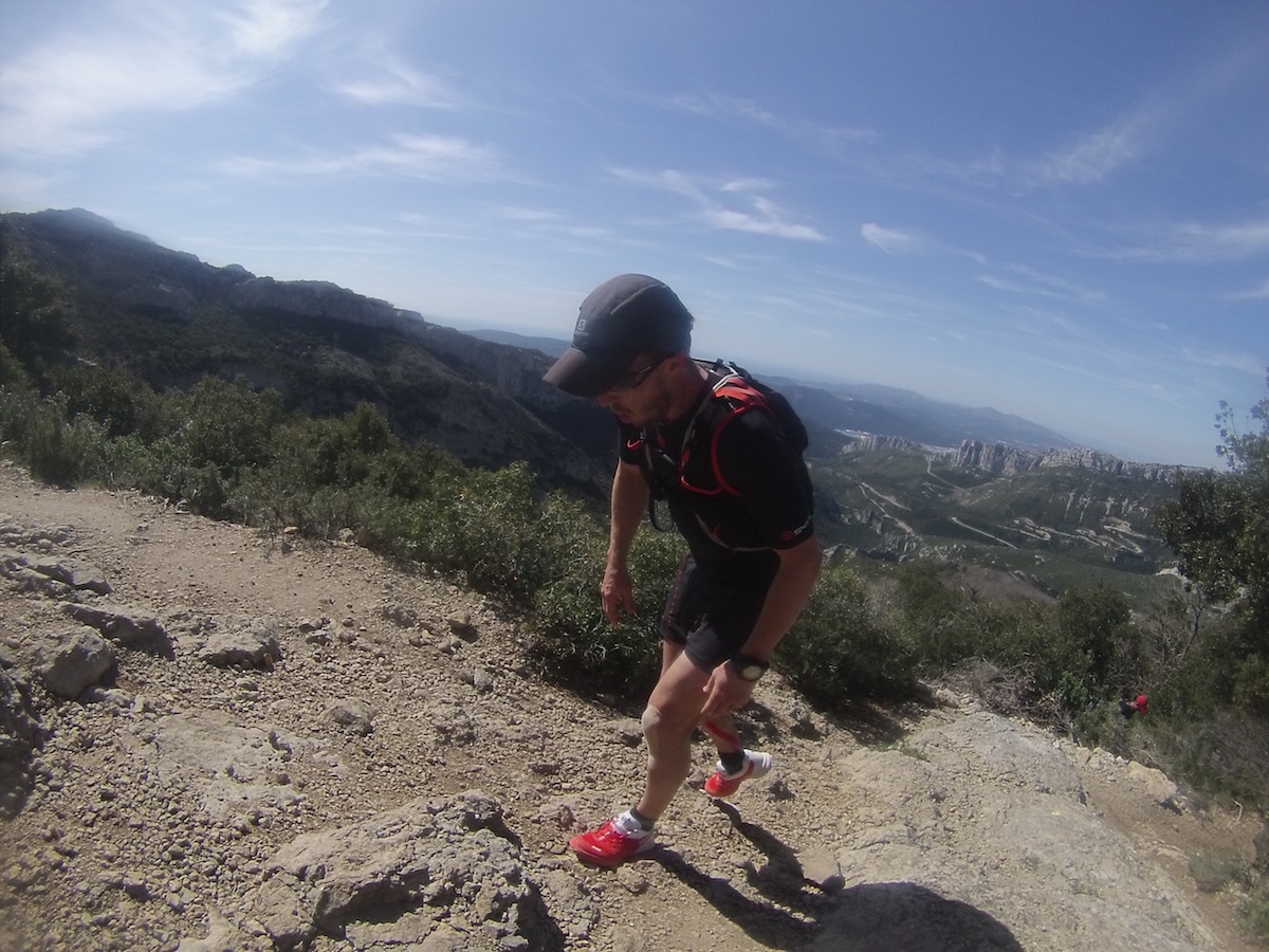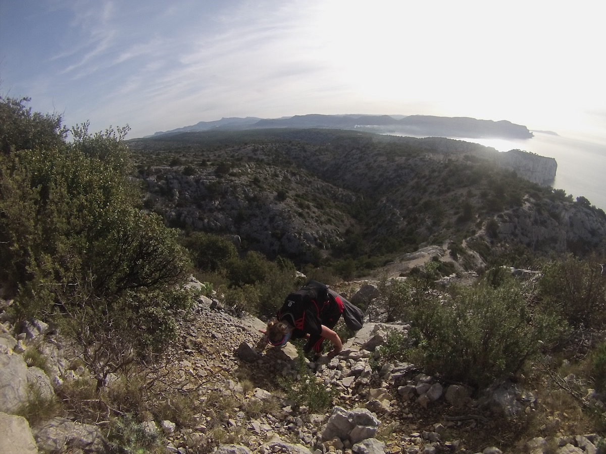 L’apothéose du WE avec les Calanques. Pour un breton, courir en bord de mer sur le sentier côtiers est une chose presque banale et je pensais à tort que j’aurais avec les calanques ce sentiment de déjà vu… Et ben non ! J’ai été bluffé par le coté vertigineux, technique, isolé. MAGNIFIQUE