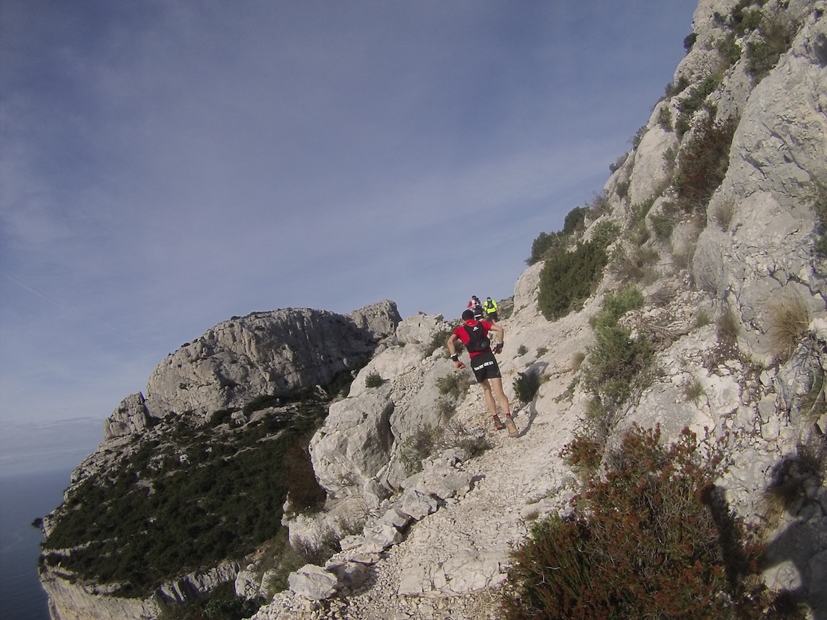L’apothéose du WE avec les Calanques. Pour un breton, courir en bord de mer sur le sentier côtiers est une chose presque banale et je pensais à tort que j’aurais avec les calanques ce sentiment de déjà vu… Et ben non ! J’ai été bluffé par le coté vertigineux, technique, isolé. MAGNIFIQUE