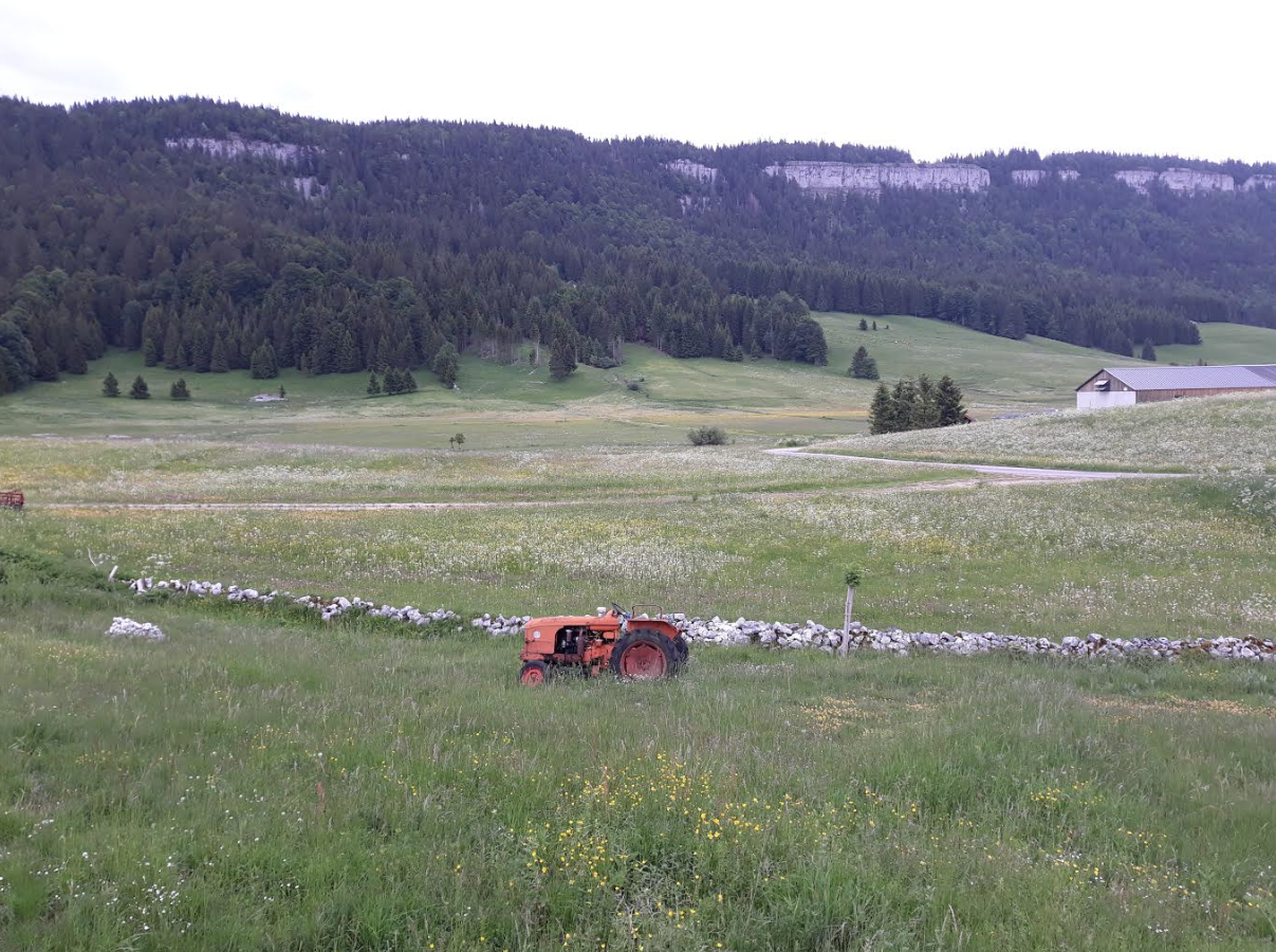 Jour 3 : Au matin rendez-vous à la gare de Montbéliard pour faire la grande traversée du Jura avec Thibault, Daniel et Anthony. Ils arrivent avec leurs vélos de course, frais. Je suis un peu fatigué, un peu mal aux fesses et j’ai bien peur que le gravel va faire office de tracteur sur la journée. Il va falloir appuyer sur les pédales pour suivre les gaziers. Ma chance c’est que l’on est suivi par Patrice en voiture. Je peux donc déposer mon sac et gagner quelques précieux kilos. Le parcours est fantastique. Des petites routes sans circulation, des paysages incroyables dans la continuité des Vosges mais avec plus d’ouverture. C’est un régal. On passe chacun par des coup de bien et moins bien. Sacha nous rejoint à 60 kil de l’arrivée et nous aide à franchir le plateau de Pontarlier un peu moins glop que le reste du parcours. Nous terminons cette étape à la Chapelle des Bois bien calmé. L’accueil du soir est excellent 😉